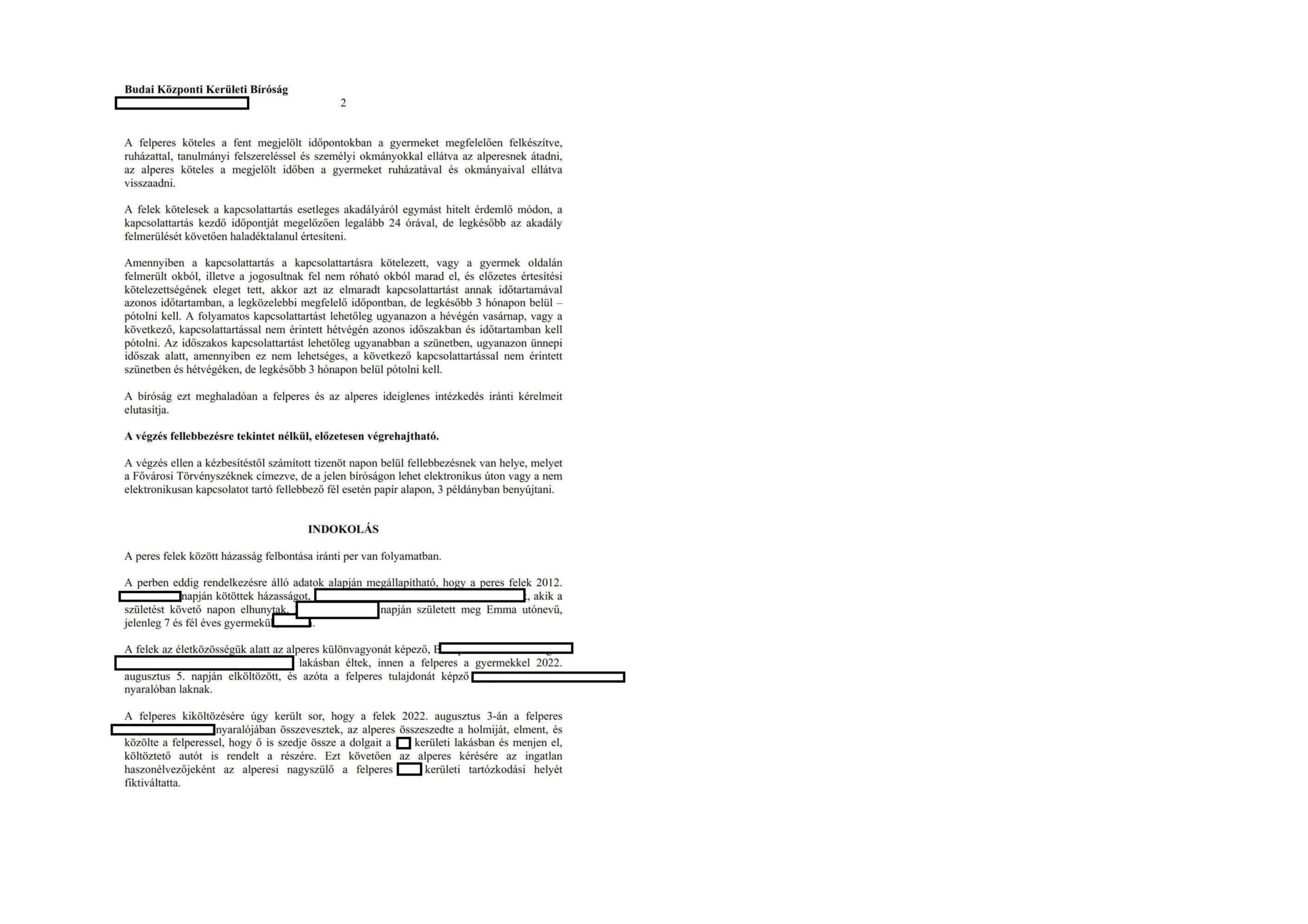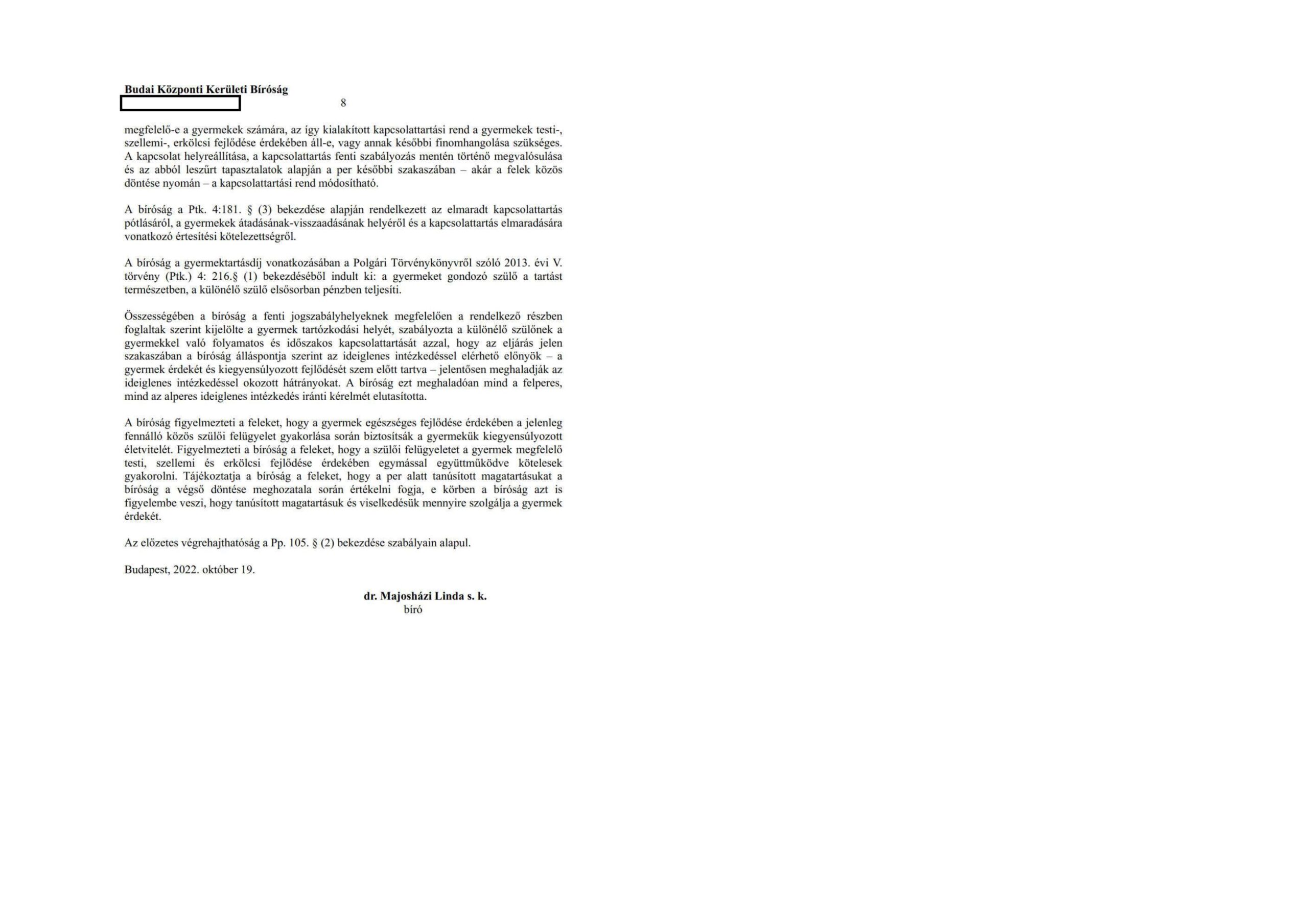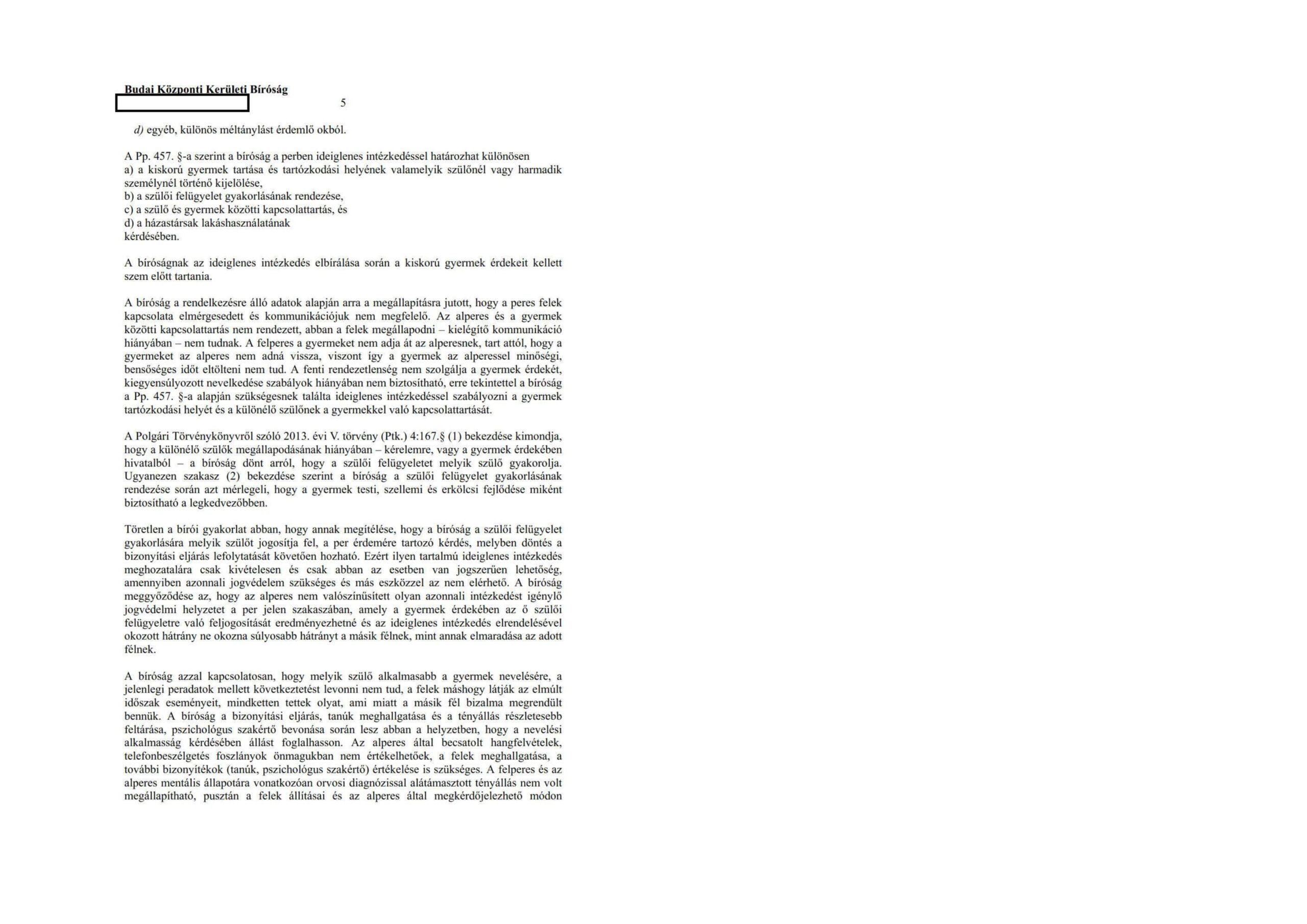 Az alperes ezen viselkedése alapján egyértelműen megállapítható, hogy nem alkalmas a szülői felügyelet gyakorlására, de sajnos még a kapcsolattartás gyakorlására sem.