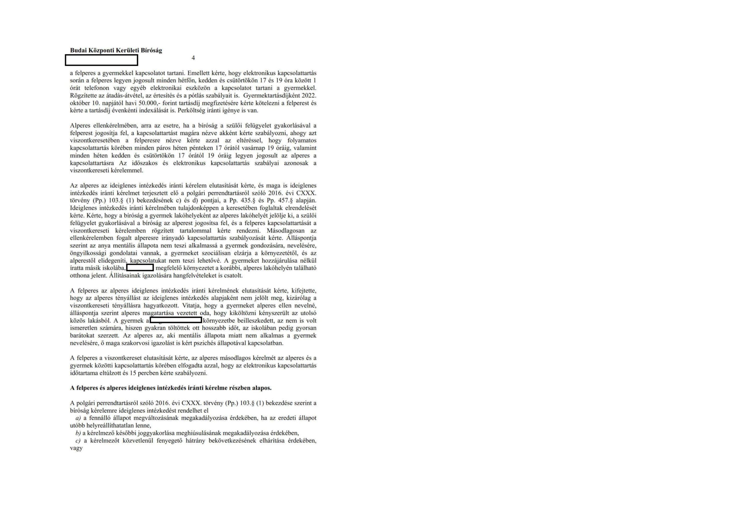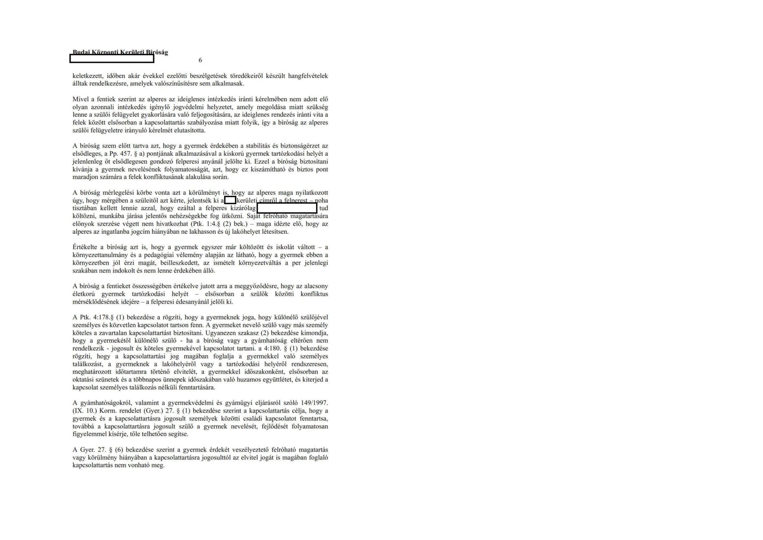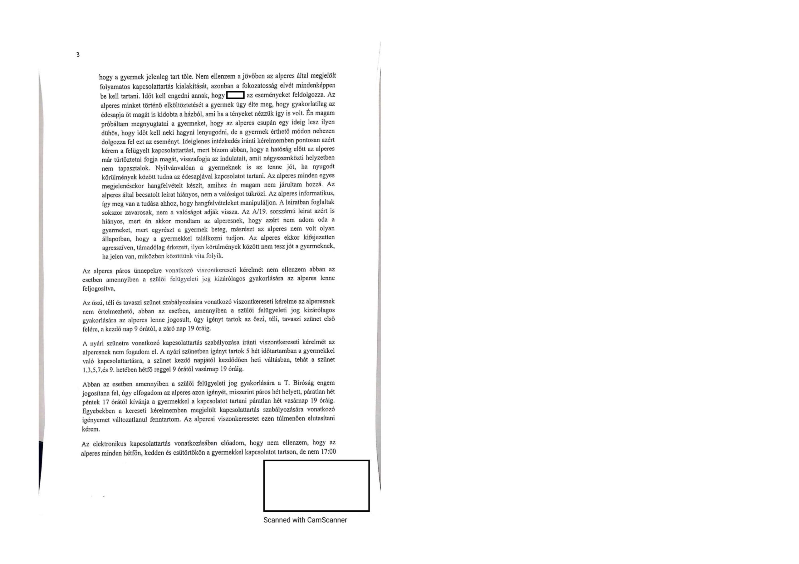 Az alperes ezen viselkedése alapján egyértelműen megállapítható, hogy nem alkalmas a szülői felügyelet gyakorlására, de sajnos még a kapcsolattartás gyakorlására sem.